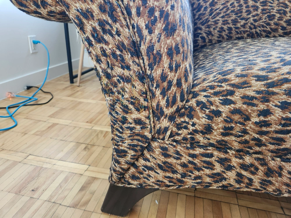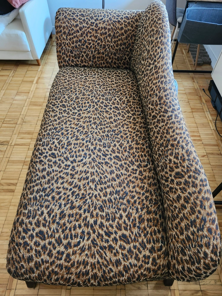 For sale: Comfortable and elegant sofa, has cat scratches (see photos) but is not broken. Pickup at Bloor and Yonge. Dimensions are: 193cm x 67cm x 80cm or 76 inches x 26.6 inches x 31.5 inches