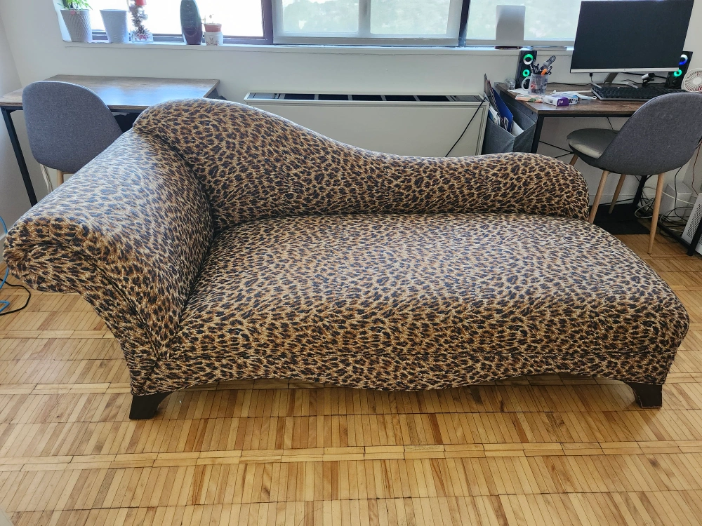 For sale: Comfortable and elegant sofa, has cat scratches (see photos) but is not broken. Pickup at Bloor and Yonge. Dimensions are: 193cm x 67cm x 80cm or 76 inches x 26.6 inches x 31.5 inches