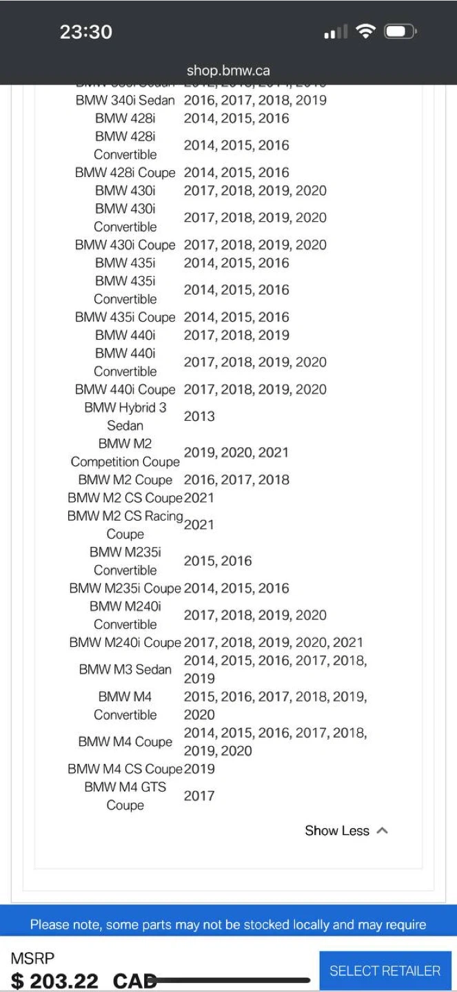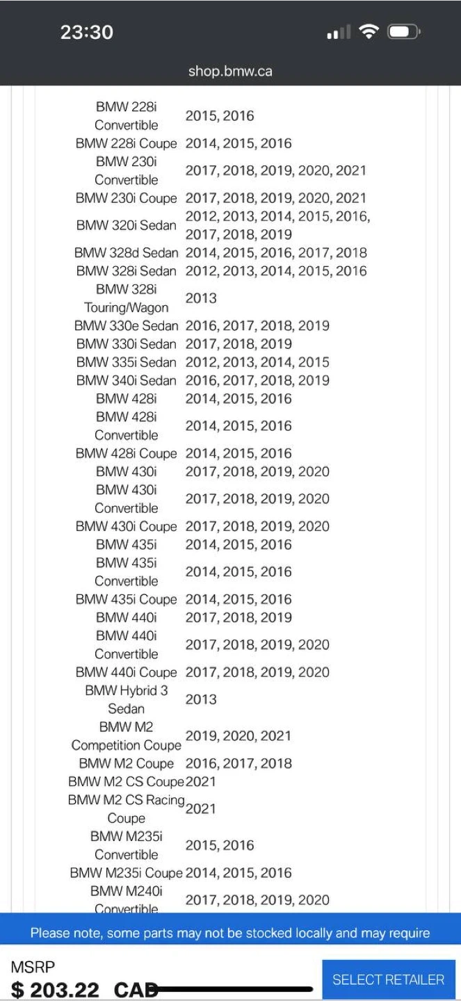 228i / 230i / 320i / 328i / 330i / 335i / 340i / 428i / 430i / 435i / M2 / 440i / M235i / M240i