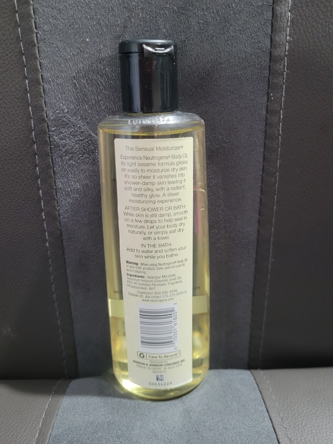Neutrogena Body Oil in the light sesame formula. It's a sheer moisturizing experience for dry skin. This oil glides on easily to moisturize skin. Use after shower or bath to help maintain skin's moisture.