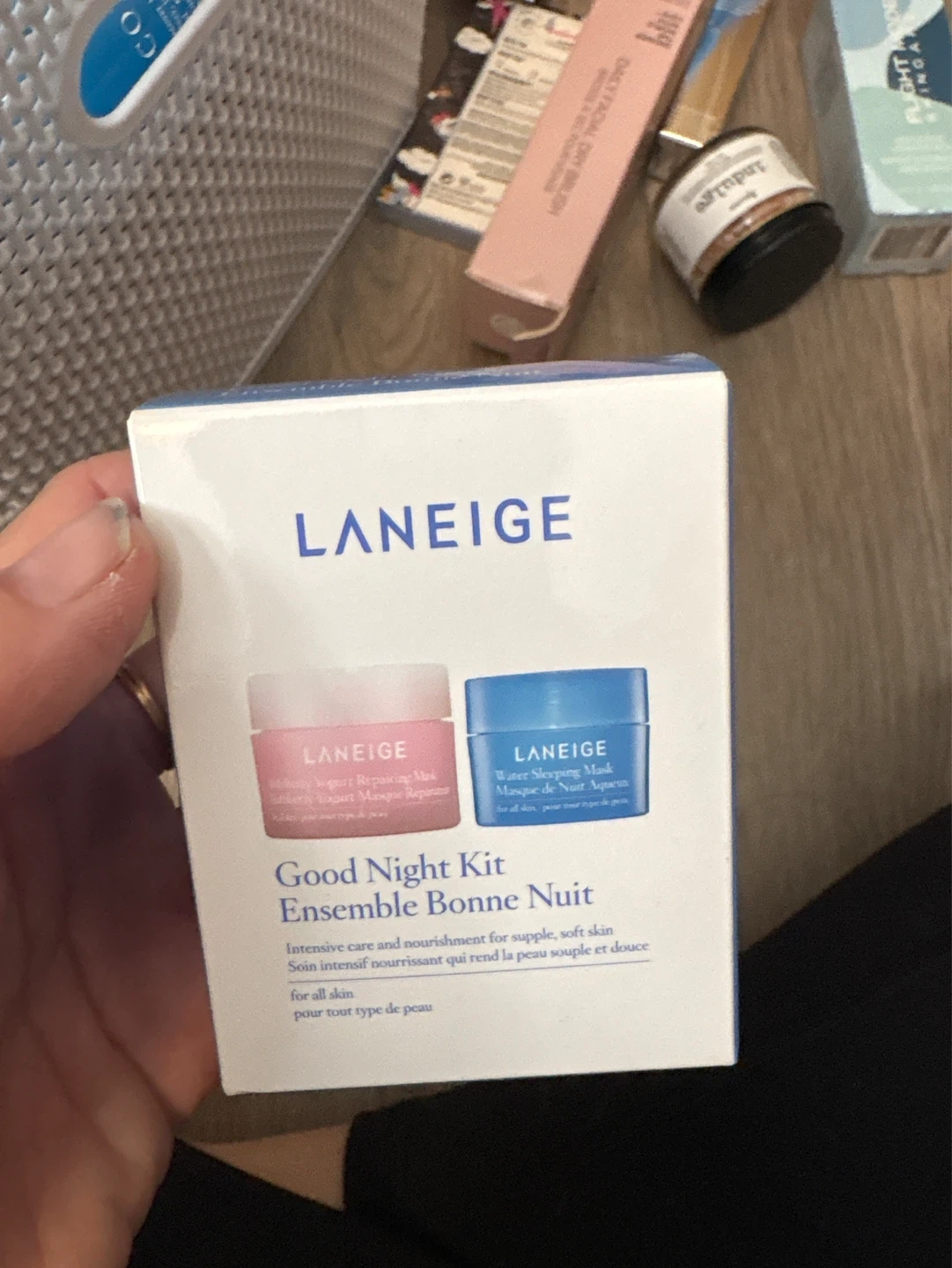 This LANEIGE Good Night Kit includes Intensive Care & Nourishment masks for supple, soft skin. It's for all skin types! The kit contains one Cica Sleeping Mask and one Water Sleeping Mask.
