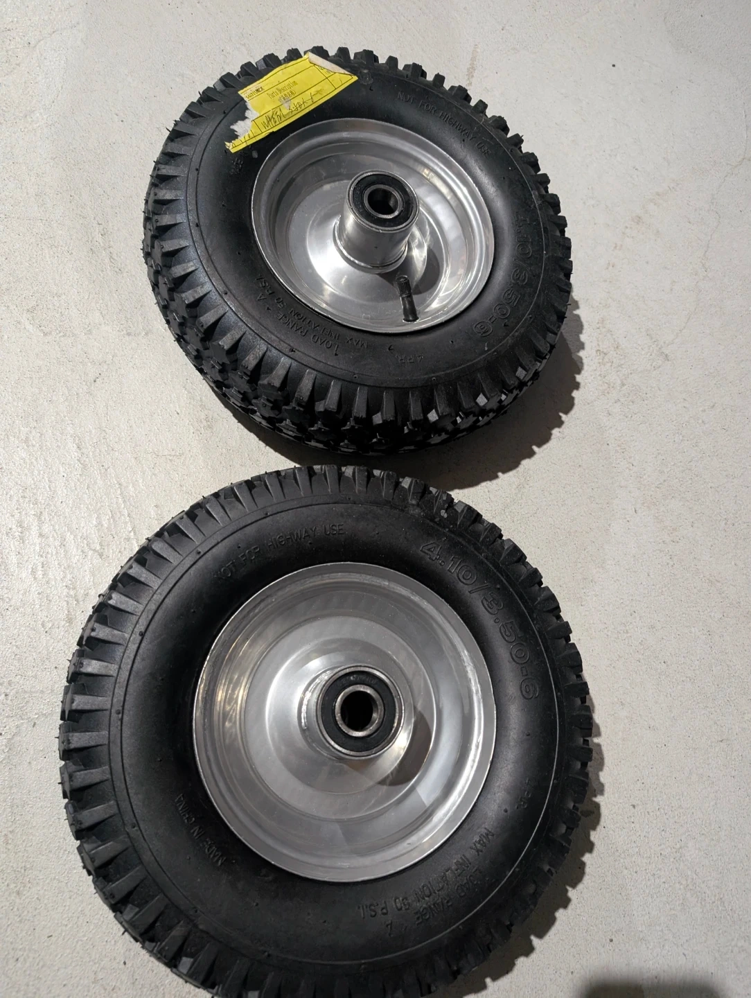 2 x 4.10/3.50-6 Pneumatic Tires with Rims
