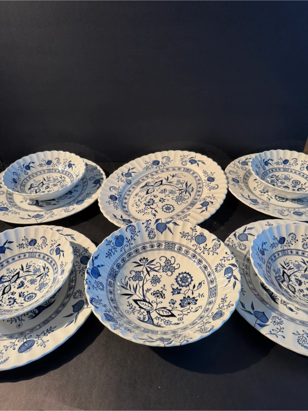 This is a pre-owned Vintage J&G Meakin England Classic Blue Nordic dish set, in good condition, perfect for adding a touch of classic charm to your dining experience. Each piece features the beautiful blue floral design, making it a delightful addition to any collection.