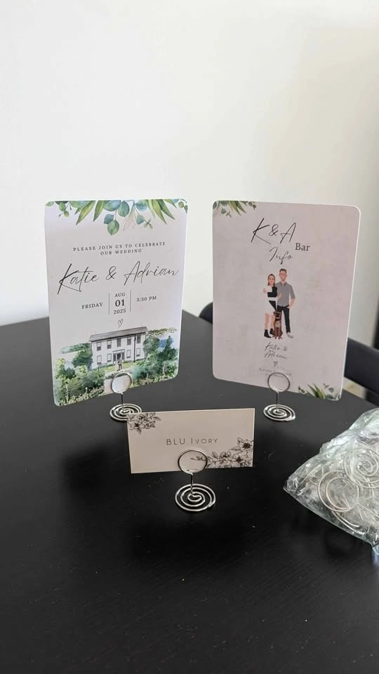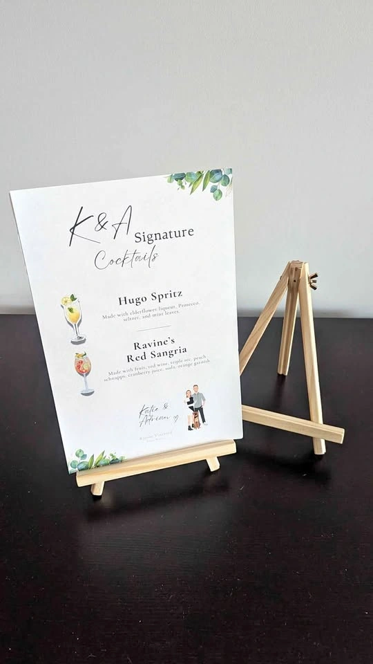 X4 Wooden Easels. Perfect for displaying signage for an event or celebration. They can support small signage and up to A3 size. Will include 18 silver card/table no. holders too!