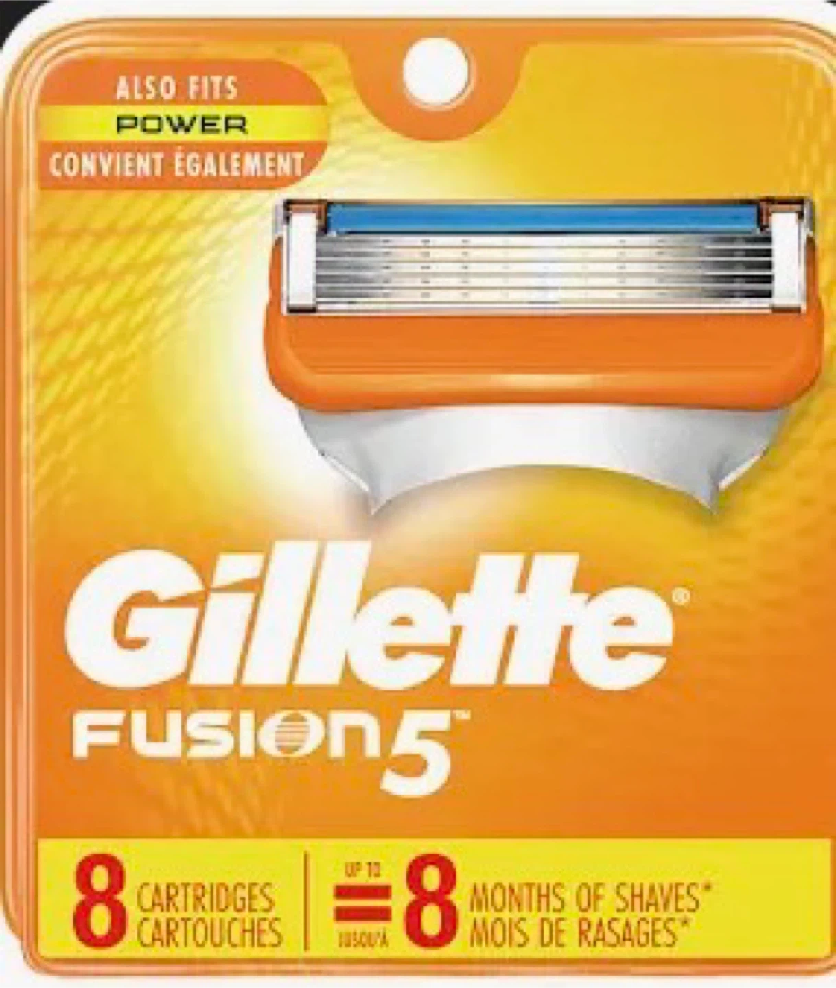 This package contains 8 Gillette Fusion5 razor cartridges. They provide up to 8 months of shaves. Also fits Power handles.