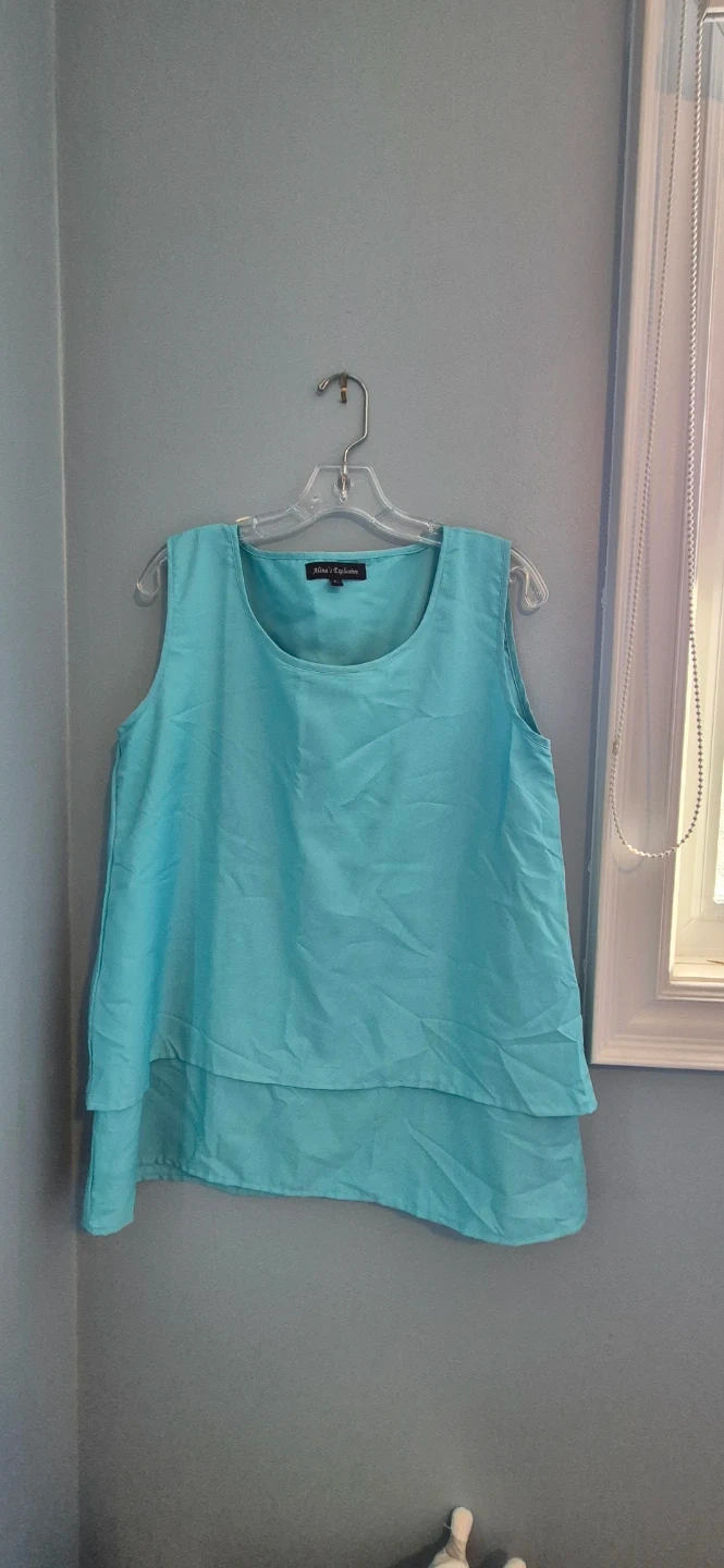 Selling a beautiful Alice & Olivia sleeveless top in a lovely turquoise colour. It's a size L and would look great for any occasion!