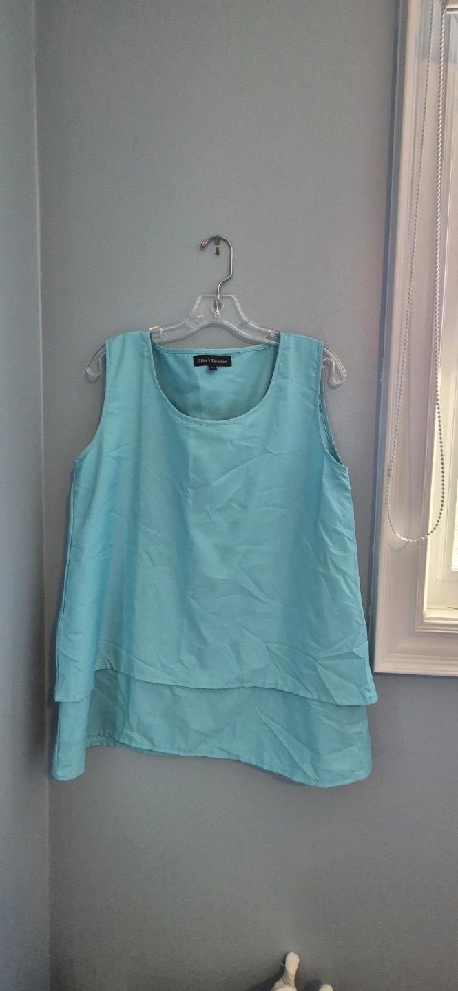 Selling a beautiful Alice & Olivia sleeveless top in a lovely turquoise colour. It's a size L and would look great for any occasion!
