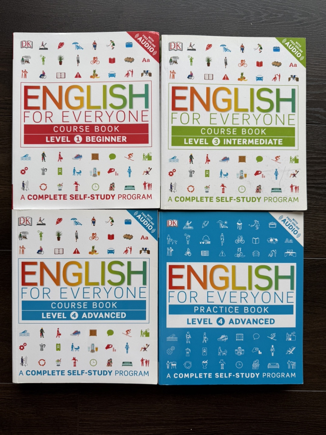 Four books: Beginner, Intermediate, and Advanced course and practice books. Self-study program. Includes free online audio.