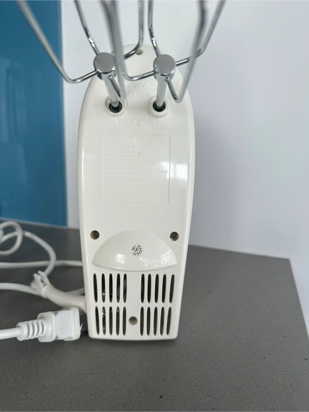 This vintage (circa early 2000’s) GE 225W hand mixer comes with dough hooks, a whisk, and beaters. It has 6 speed settings and a surge function for extra power. Includes original case and manual.