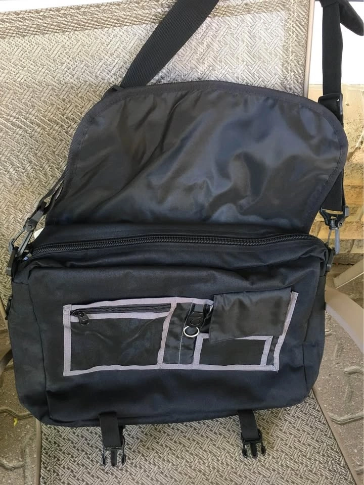 Brand new American Tourister black nylon computer bag with matching cushioned shoulder strap, measuring 19”x14” (excluding handle). It features an outside large pocket with Velcro closure and a zippered front pocket with an American Tourister name and address tag. If it’s listed, it’s available. Pickup at Warden & Hwy 7 in Markham.