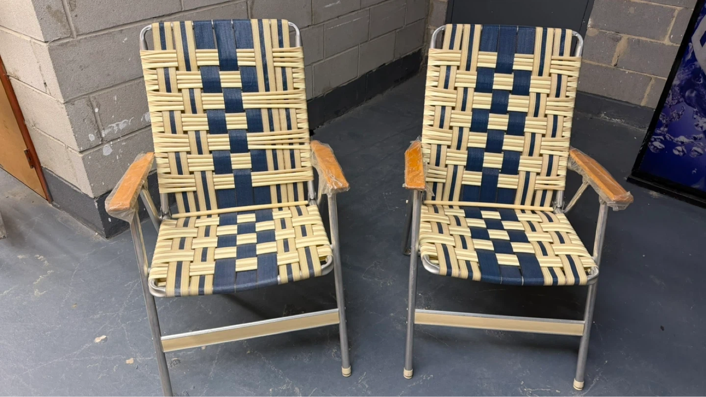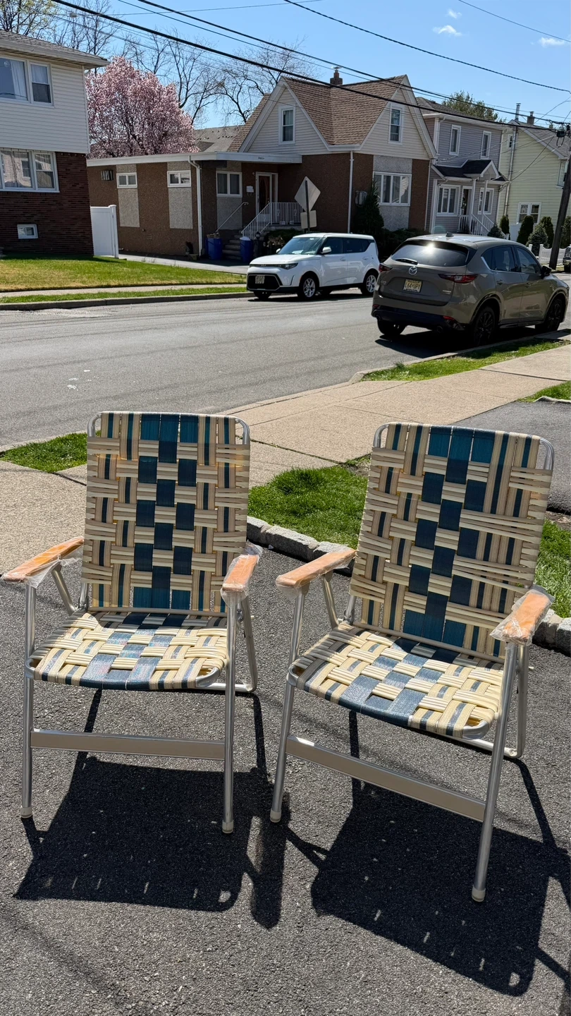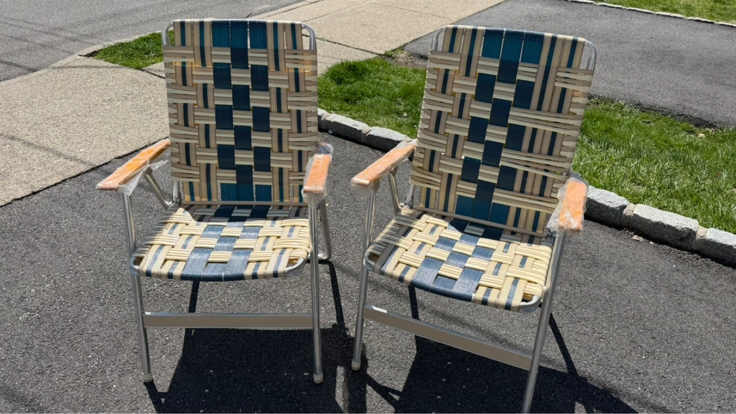Vintage Woven Webbing Lawn Chairs - Set of 2