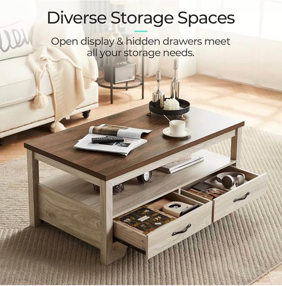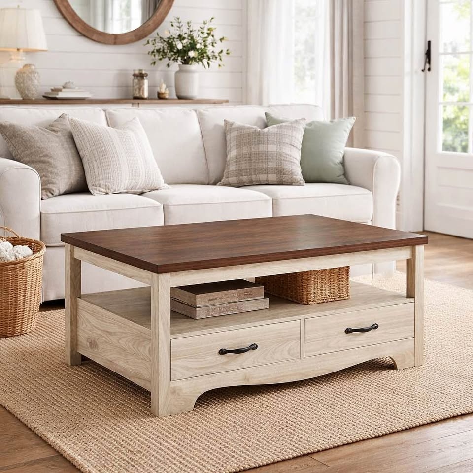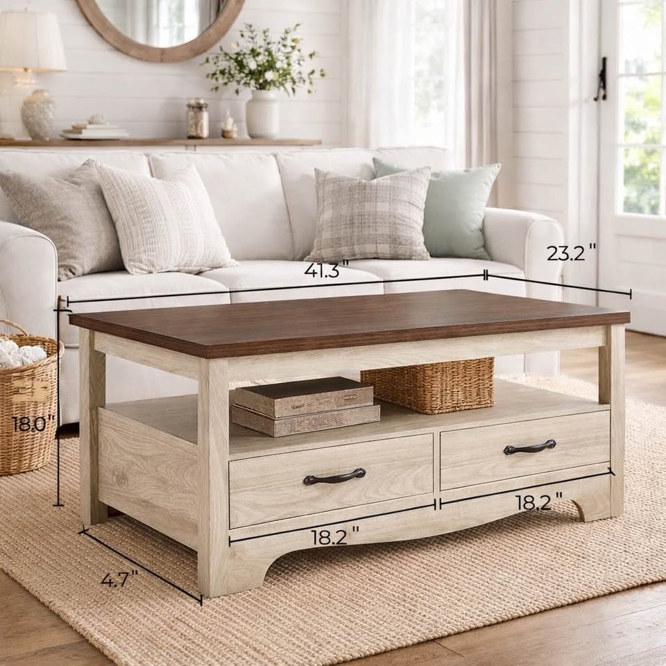 Modern Farmhouse Style Coffee Table with 2 Drawers β Brand New