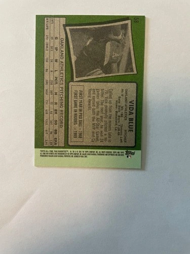 The 2003 Topps All-Time Fan Favorites #58 Vida Blue trading card is a sought-after collectible for baseball enthusiasts. Produced by Topps, this sports trading card features legendary player Vida Blue. As part of the All-Time Fan Favorites set, this card showcases unique design and artwork, making it a valuable addition to any sports card collection. Whether for display or reliving nostalgic moments in baseball history, this trading card captures the essence of the sport and the player. This card was pulled from a never before opened pack on 7/20/25.