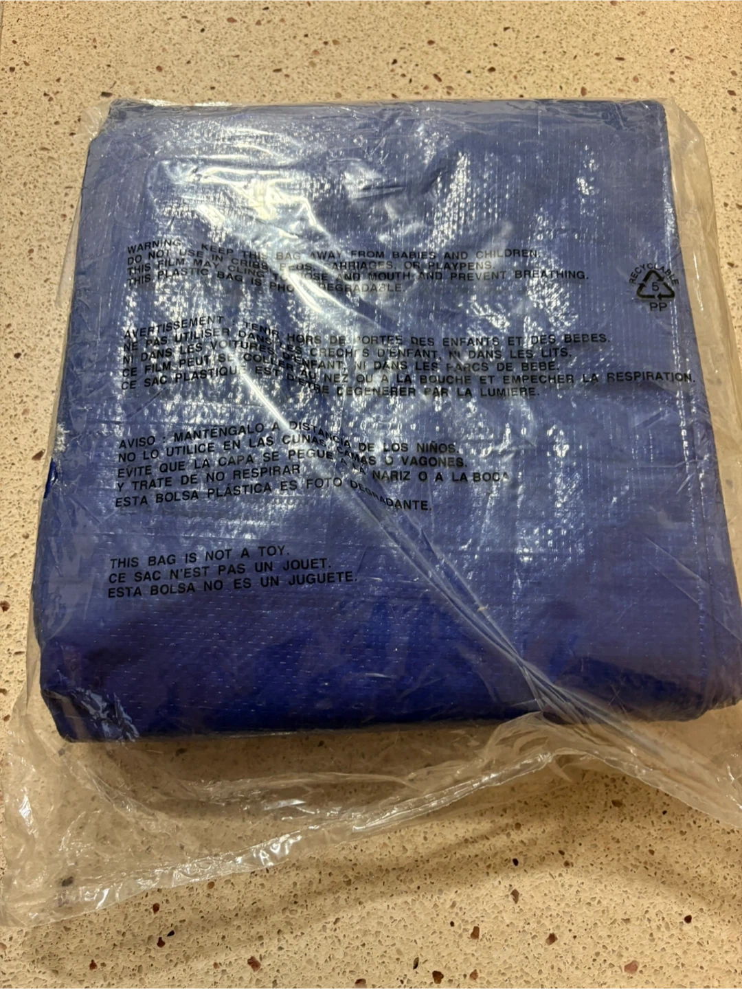 This Ozark Trail tarp is blue and measures 9 ft x 12 ft. It's medium duty and suitable for various uses. UV protection recommended for extended outdoor use. Made in Vietnam.