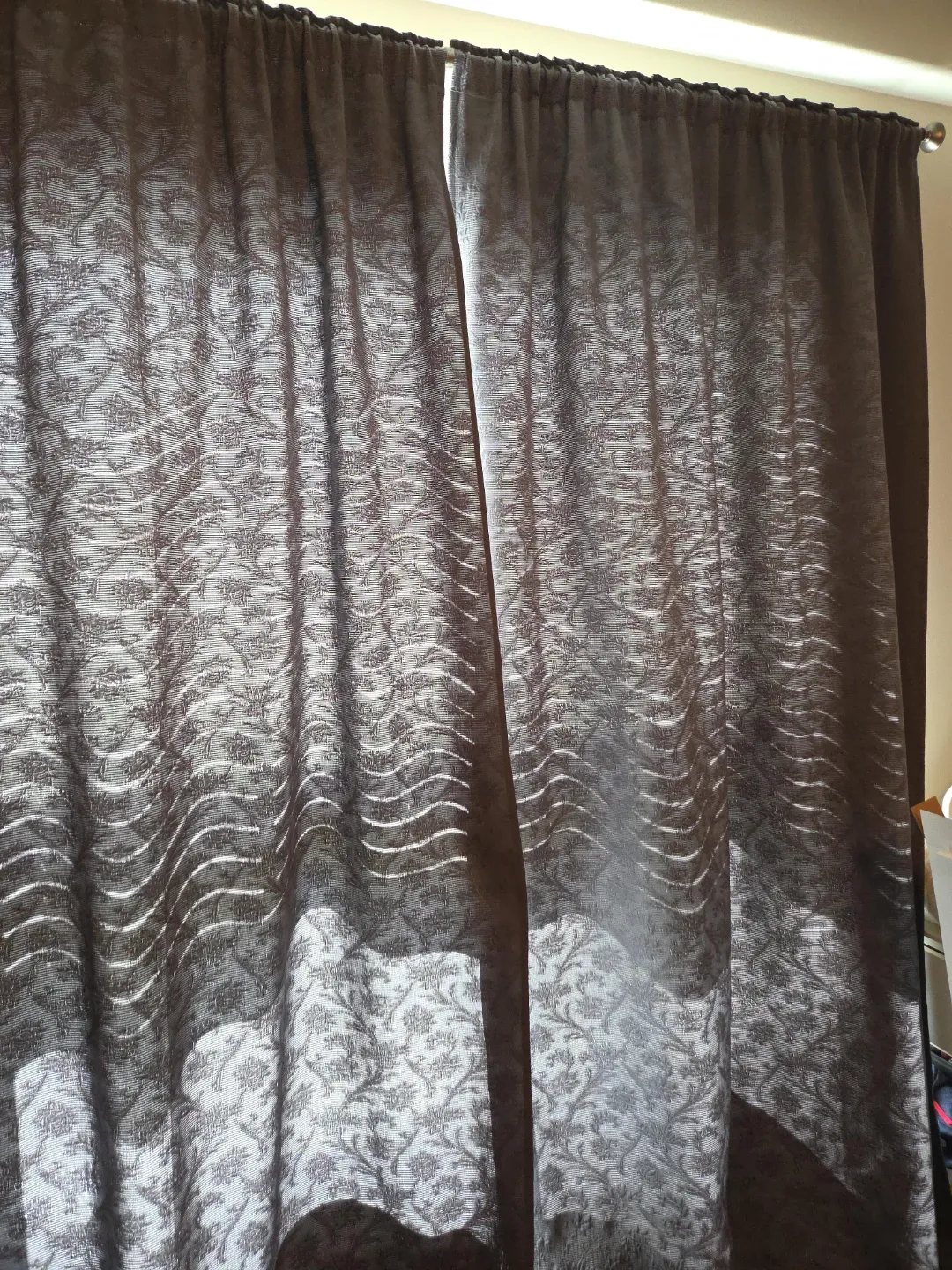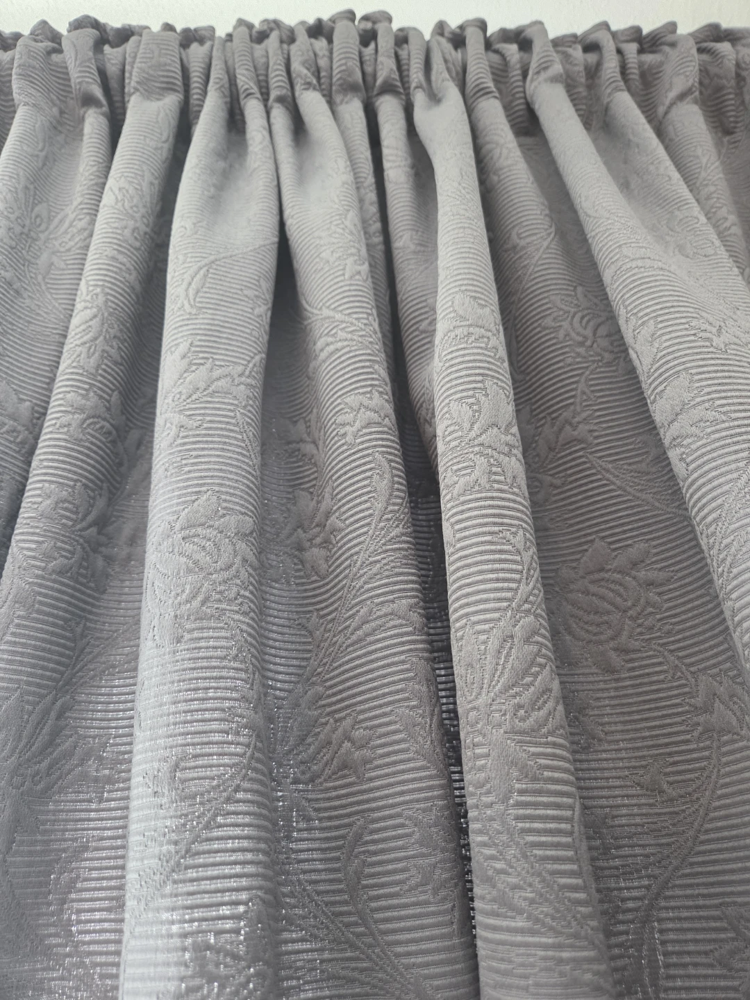 IKEA Dark Grey Textured Curtains with Floral Pattern