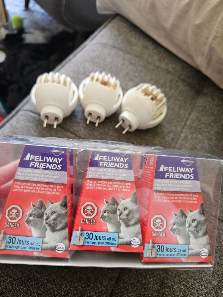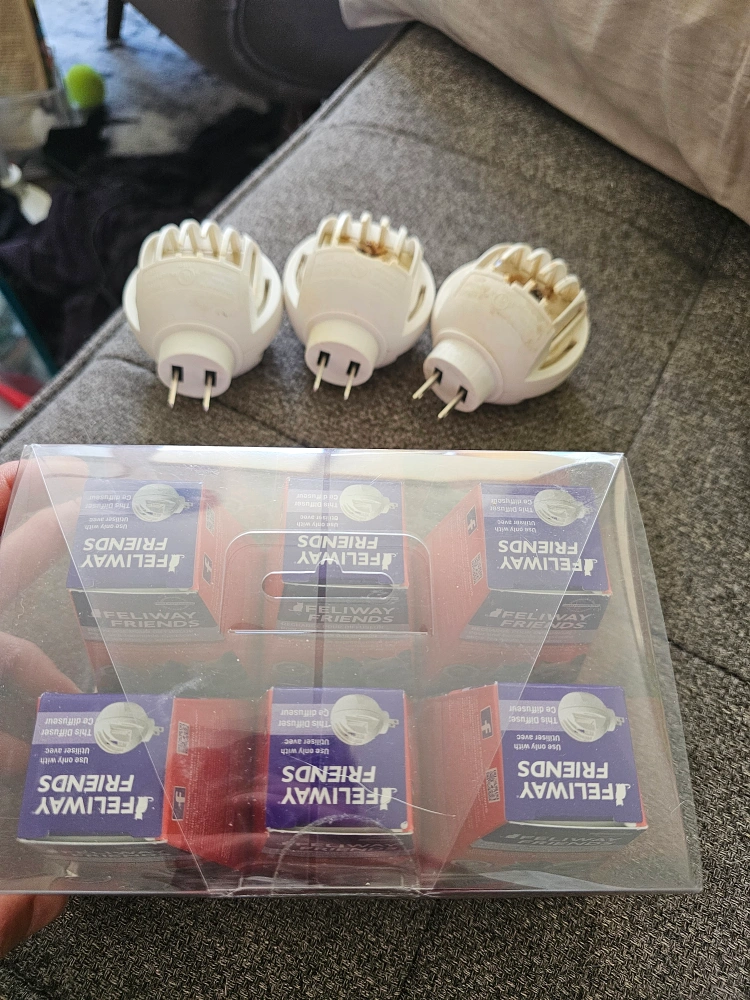 Here is a Feliway Friends diffuser refill kit. 6 diffuaers in the kit. Comes with refill cartridges and diffusers. Great for creating a more tranquil home environment for your feline friends.