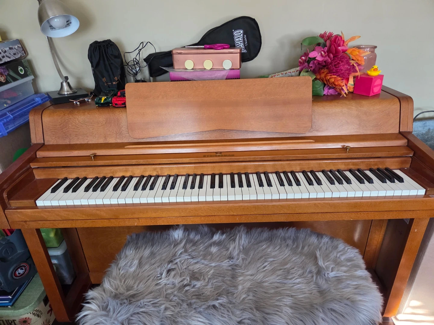 Free upright acoustic piano by Steigerman. In good condition and has been well cared for. Great for beginners, students, or anyone looking for a real acoustic piano.