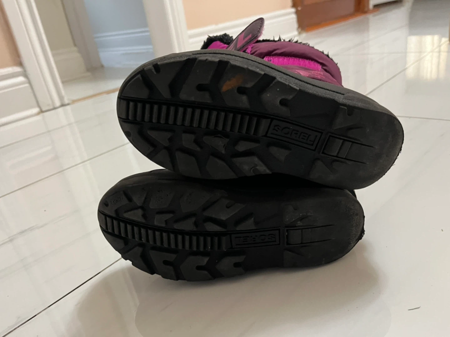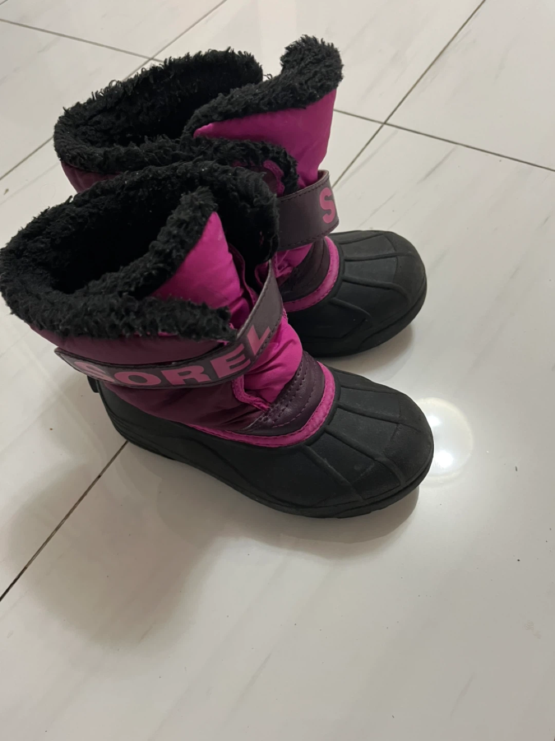 Selling a pair of Sorel kids snow boots in size 13. They are in very good condition and ready for some winter fun! The boots are black and pink, and have a faux fur trim. From pet free and smoke free home.