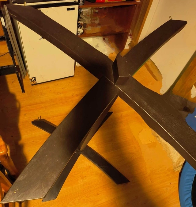 This is a used 3 piece hardwood table set that has been lightly refurbished and is ready to find a new home. This imperfect piece of furniture is for someone or a family that doesn't care as much for the looks, but more for functionality - also which doesn't come with an insane price tag for a hardwood table, that can actually extend and seat up to 8 people! You, however, don't have to use the middle piece and can seat a smaller family at it. It's been previously loved, and now with a new lease on life, with some TLC and it is eager to impress! There are some signs of wear and tear, as to be expected of used furniture. If the ad is up, it's still available! $45 OBO. Feel free to see the unit. We need to clear space. Text first please. Cashless payment and cash accepted.
