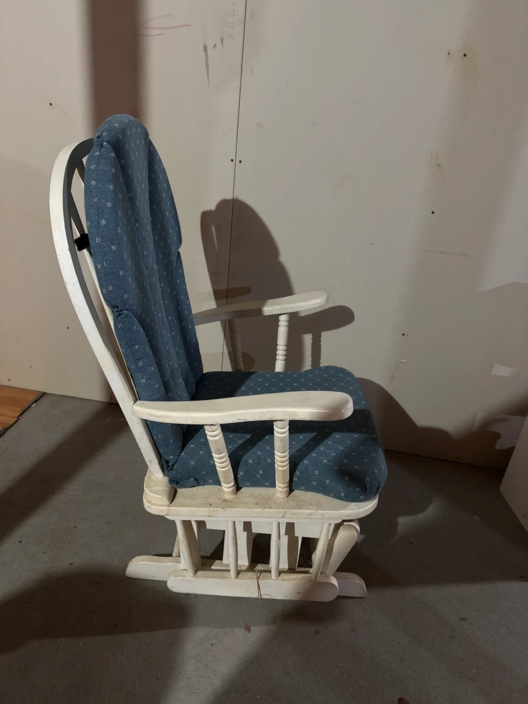 Buy & SellGlider Rocking ChairGlider Rocking Chair$58Comfortable glider rocking chair with a blue patterned upholstery. Features a white painted wooden frame. It's perfect for a nursery or living room.ConditionGoodDimensions27”x22”x42”WHERE TO MEETCheck LocationView MapSELLERverifiedRickLiverpool600 reviews0 chats·1 favorites·6 viewsSEND CHAT TO SELLERHi Rick! I’m interested in your listing.Hi Rick! I’m interested in your listing.Get the Karrot app to chatSign In to chat