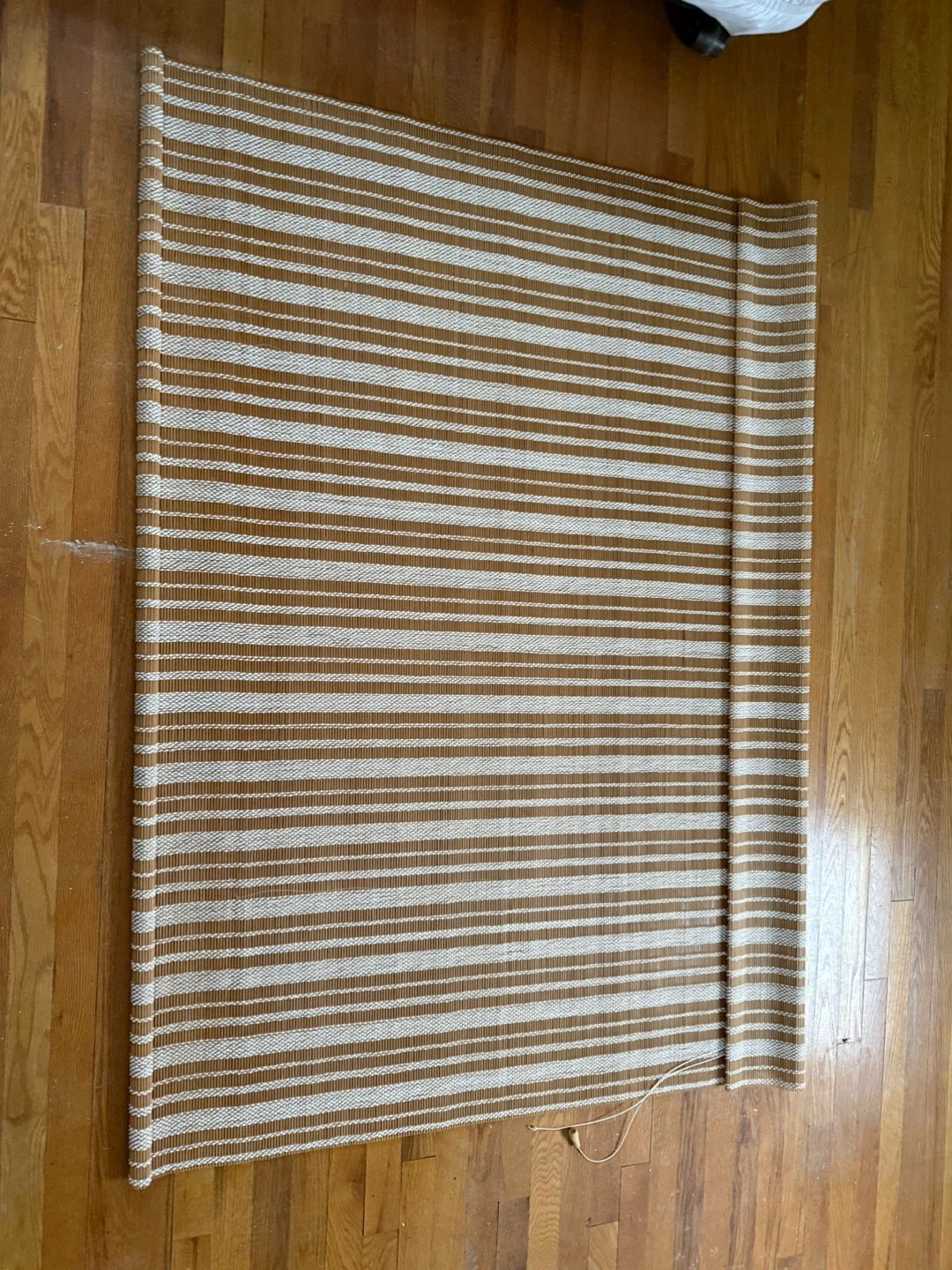 Selling a gently used bamboo window shade in brown and beige. It's in great condition and would be a nice addition to any room!