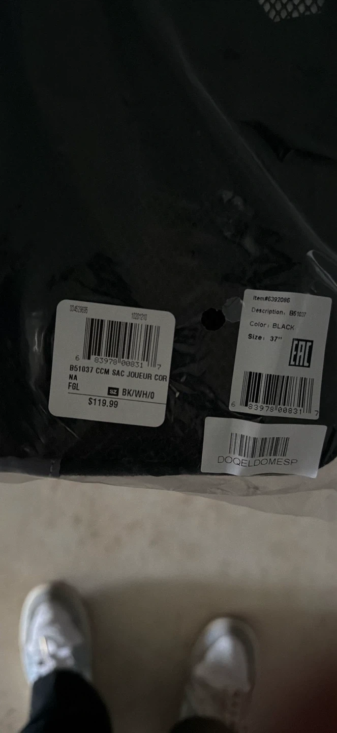 This is a CCM BS1037 Sac Joueur Corps Sac Sacoche Joueur. It's black with a 37" size. This bag is designed for hockey players.