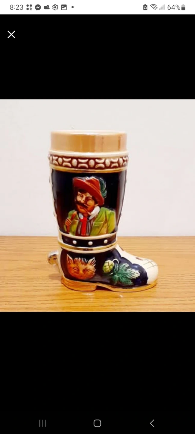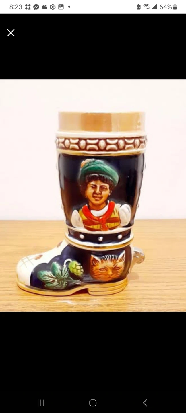 Vintage, West German Goebel Hand Painted ceramic boot beer stein.