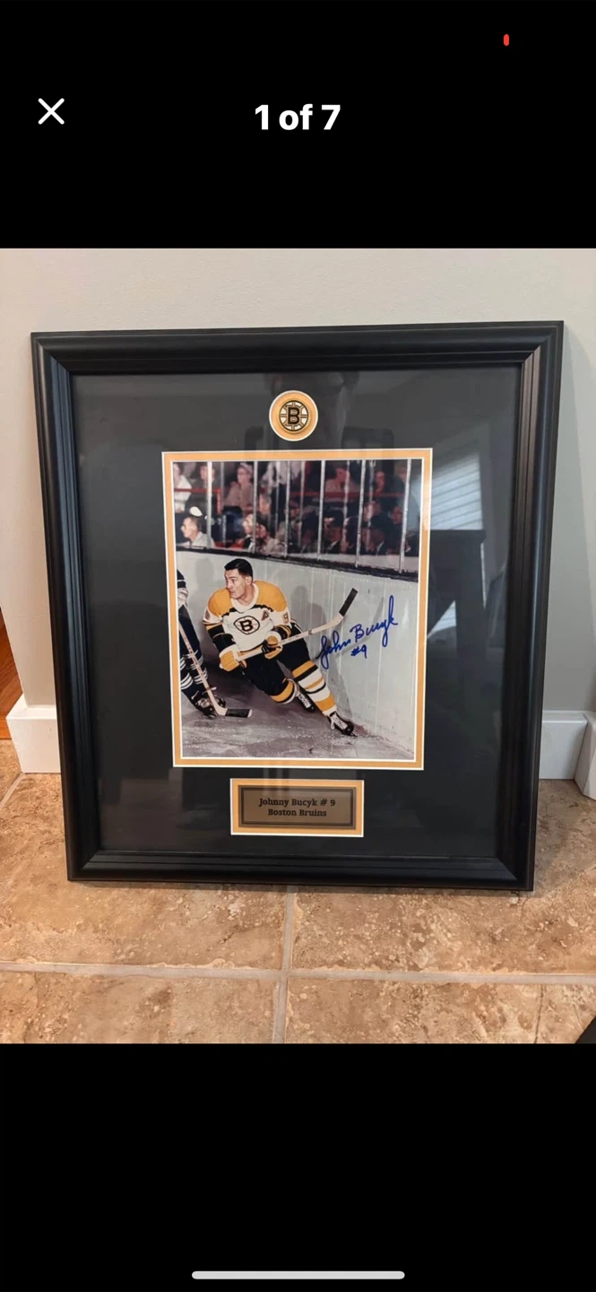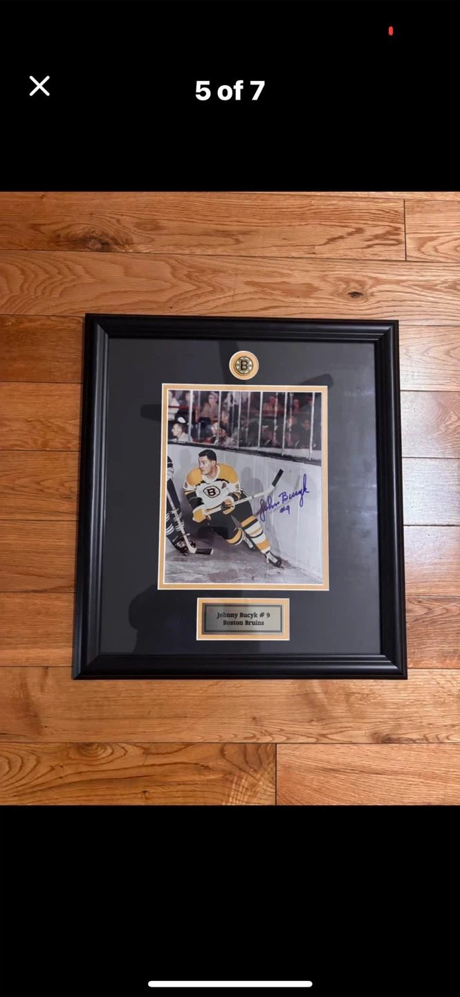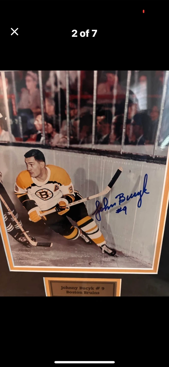 Vintage Boston Bruins-Johnny Bucyk Autographed Framed Photo..approx. 8x10..in excellent condition..total frame size shown in pics..