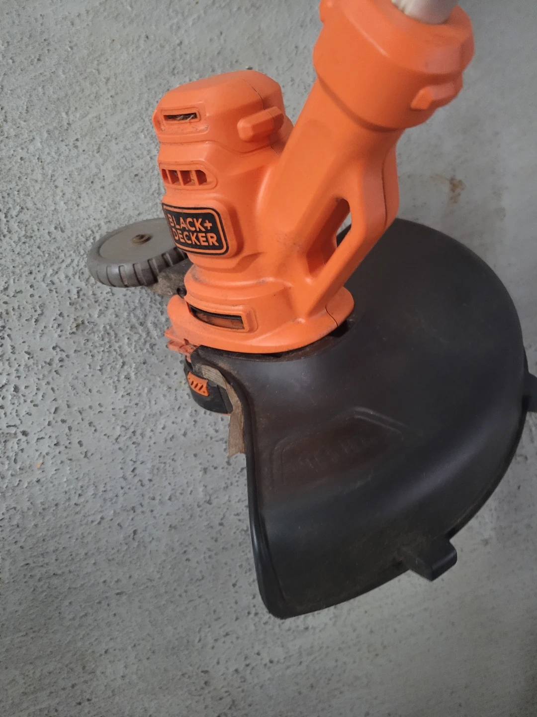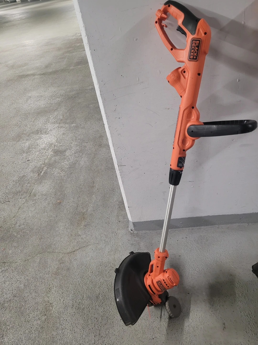 This is a Black+Decker electric string trimmer. It's orange and black in colour. It's a corded electric model that runs on 120V AC at 60Hz.Please see all pictures for details.