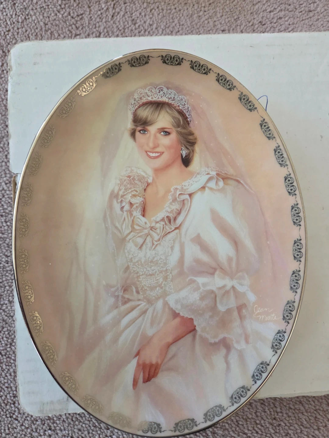This decorative plate is the first issue in the 'Diana: Queen of Our Hearts' collection, limited to 95 firing days. It features artwork by Jean Monti and is crafted to exacting standards. A limited edition collectible from The Bradford Exchange.