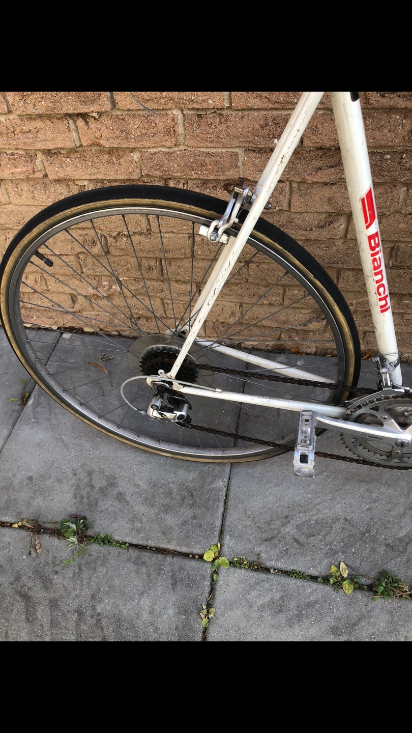 Selling a Bianchi road bike. It need new cable anchor ( pic 6) and ready for a new owner! The frame is white with red Bianchi logos. Perfect for getting around town or enjoying a leisurely ride on the weekends. All sales are final