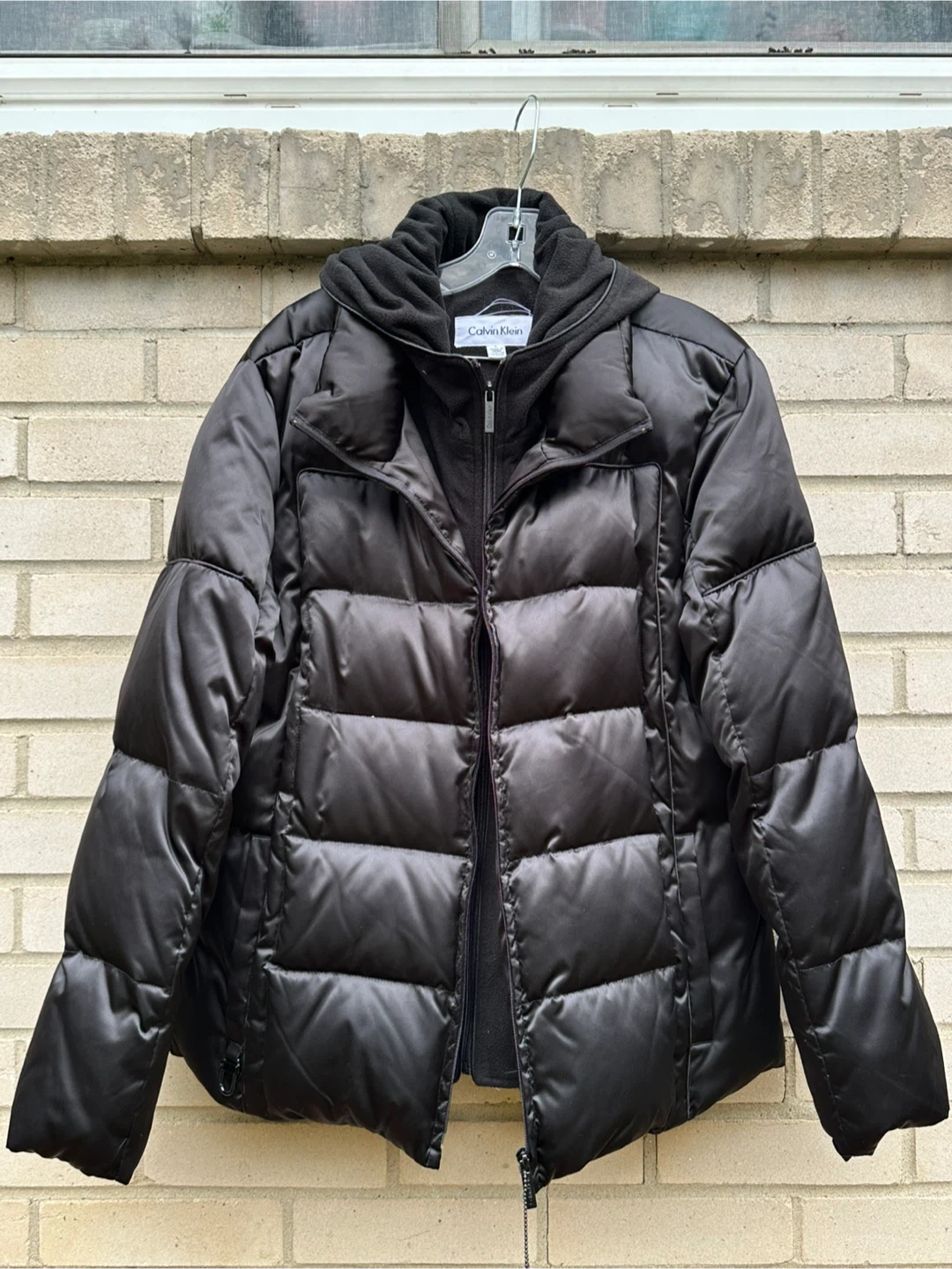 Selling a Calvin Klein black puffer jacket in size L. It's in great condition and perfect for staying warm during the colder months!