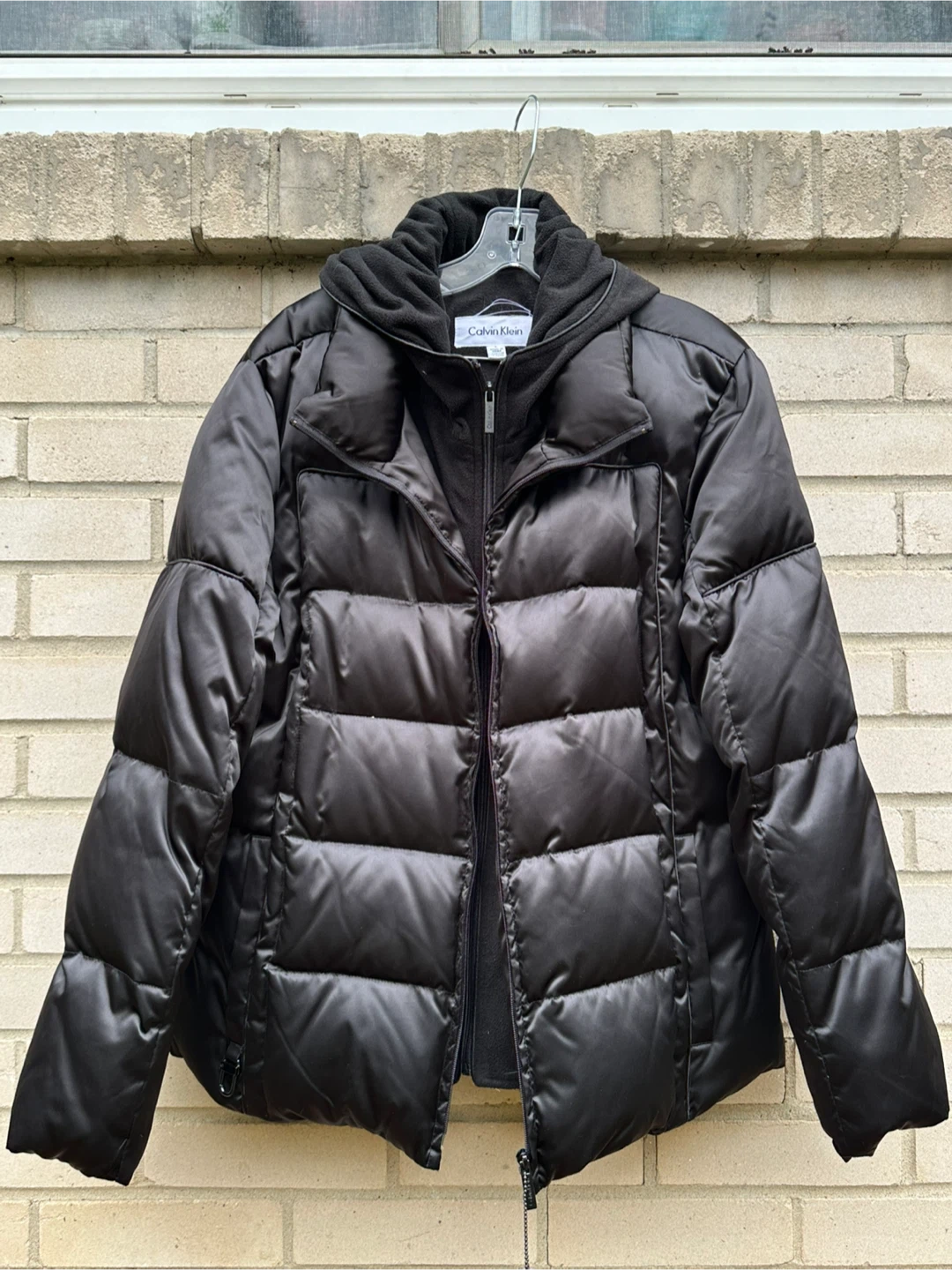 Selling a Calvin Klein black puffer jacket in size L. It's in great condition and perfect for staying warm during the colder months!