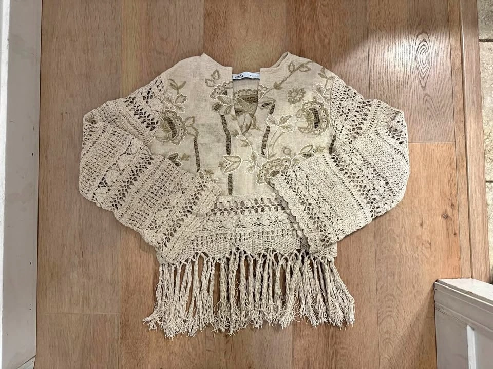 ZARA Women Long Sleeve Tassels Shirt with Embroidery