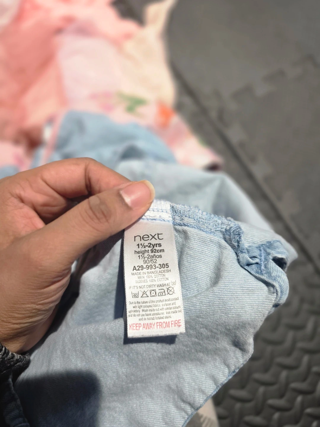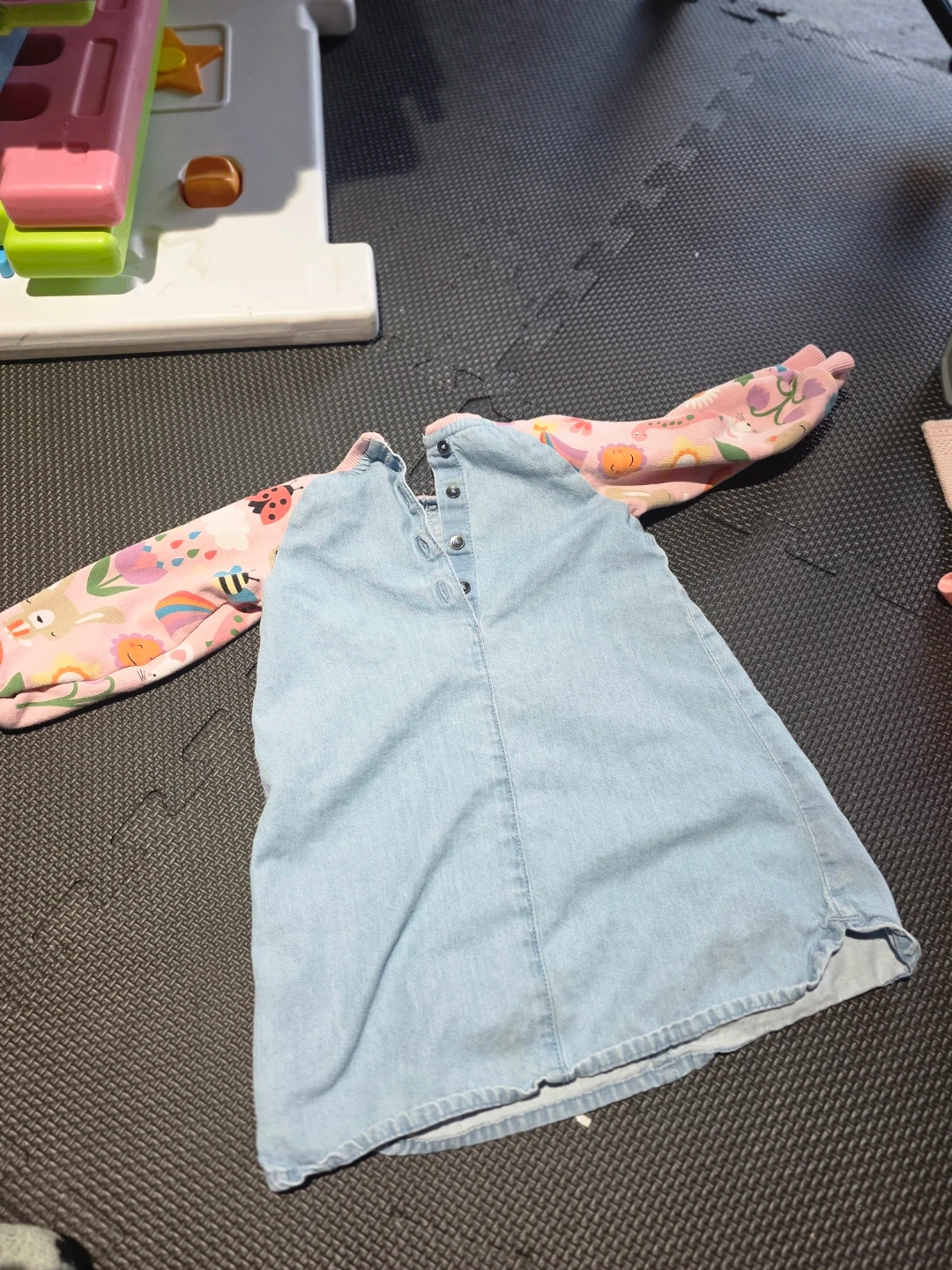 This adorable dress from Next features a classic denim A-line skirt with two front pockets. It has long sleeves with a sweet pink fabric adorned with a playful fox and floral print. It's suitable for ages 1.5-2 years, height 92cm. Made of 100% cotton.