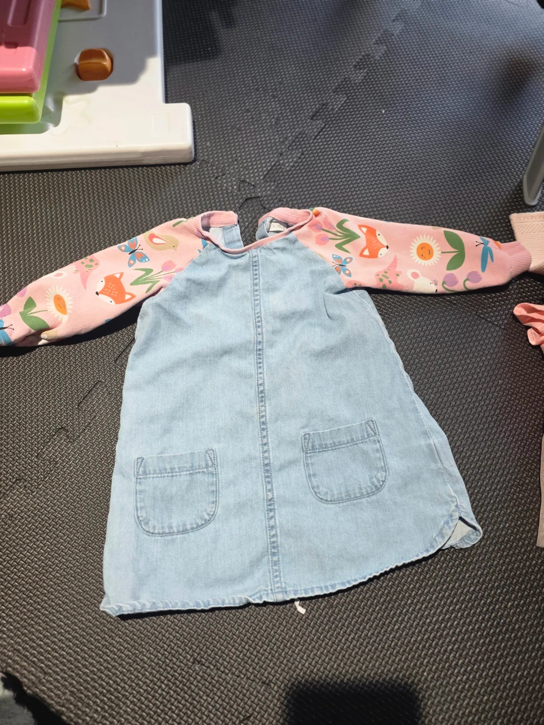 This adorable dress from Next features a classic denim A-line skirt with two front pockets. It has long sleeves with a sweet pink fabric adorned with a playful fox and floral print. It's suitable for ages 1.5-2 years, height 92cm. Made of 100% cotton.