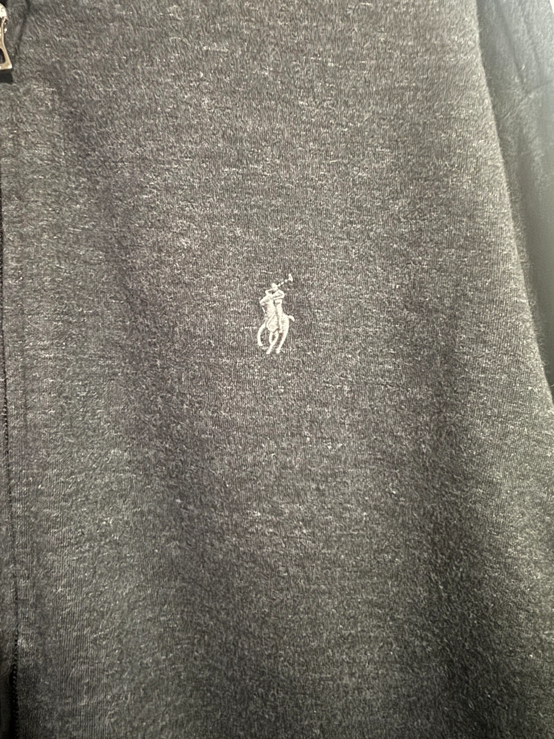 Polo Ralph Lauren zip-up jacket in charcoal grey. Made in Cambodia. It's a size L, fitting 180/100A.