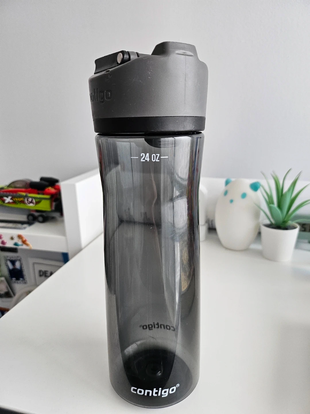 Used Contigo waterbottle. Has some signs of wear, slight knick on the lid..