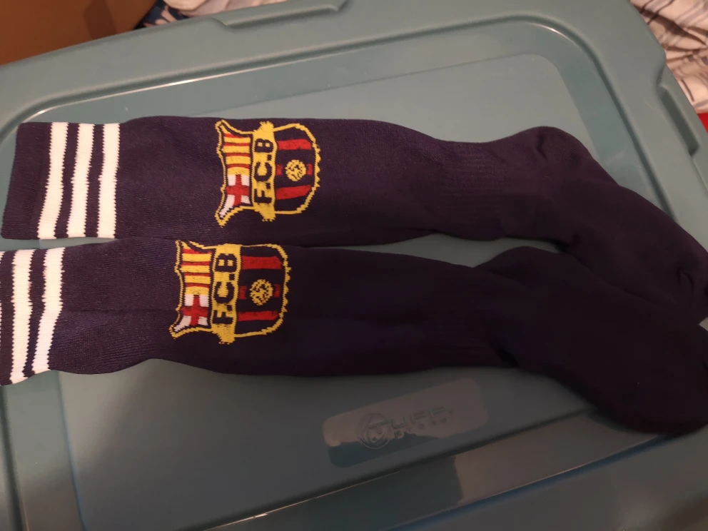 Selling a pair of F.C.B. Barcelona soccer socks! They're in great shape and perfect for showing your support for the team on the field or just around town. Size fits ages 4-6 years old
