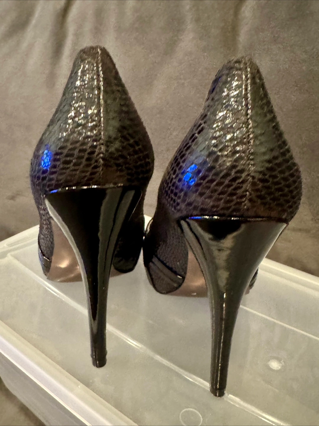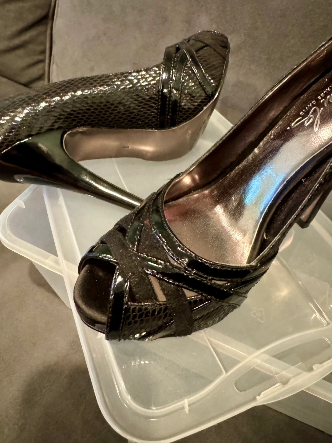 Beautiful Charles David Black Snakeskin Peep Toe Heels size 7