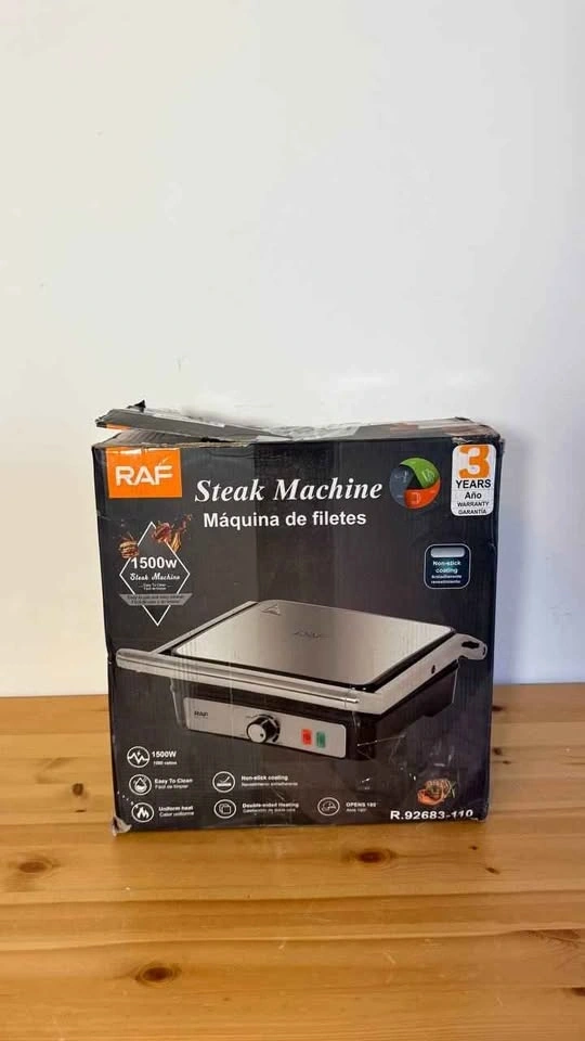 Brand new. 1200W power for fast and even cooking. Non-stick removable plates for easy cleaning. Opens 180 degrees for versatile grilling. Adjustable temperature control for perfect results. Ideal for sandwiches, paninis, and grilling at home.