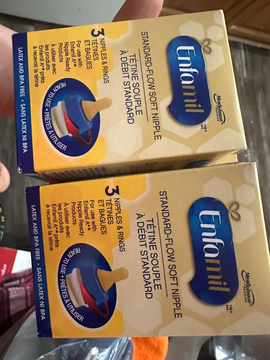 Here are 3 standard-flow soft nipples by Enfamil and similac .They're latex and BPA free. Ready to use! Standard can use it on any bottle