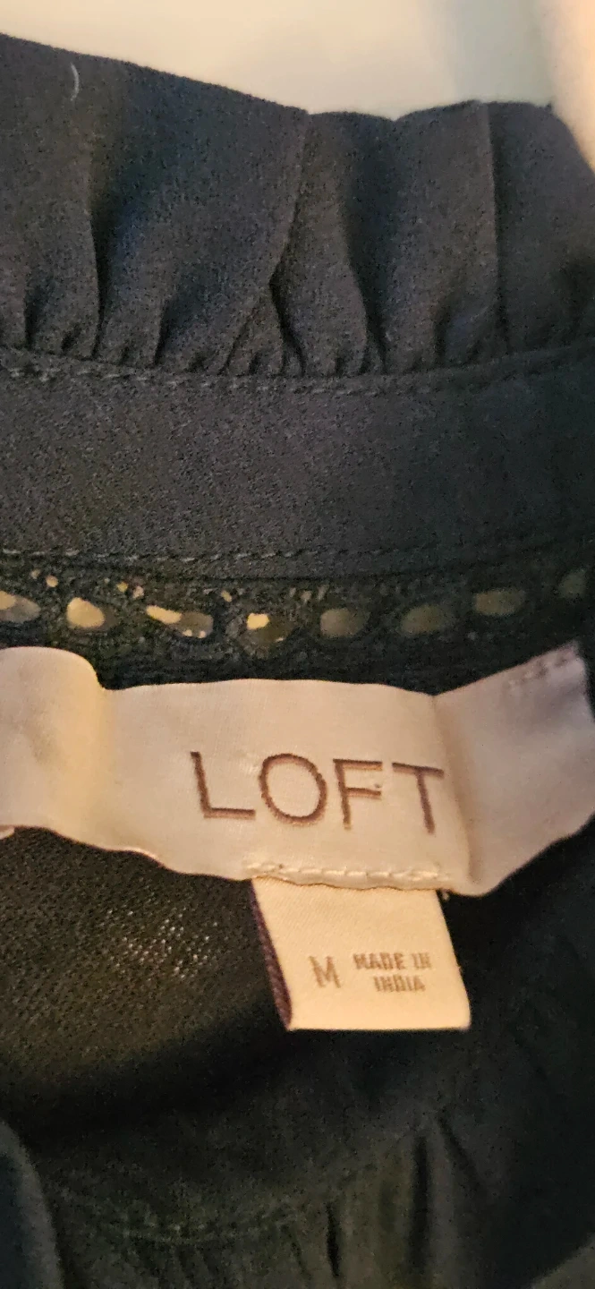 LOFT Dark Teal Mock Neck Blouse - Size Medium