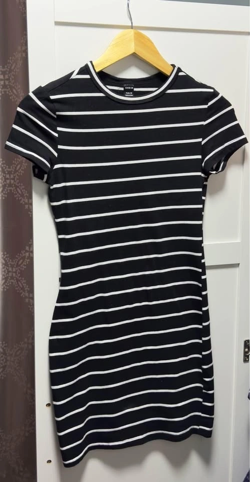 Elevate your summer wardrobe with this SHEIN PETITE striped print bodycon dress. Designed for a flattering fit, it hugs your curves perfectly while the vibrant stripes add a playful touch. Ideal for daytime outings or evening gatherings, this versatile piece pairs beautifully with sandals or heels. Don’t miss out on this stylish essential for your summer adventures! Size: XS