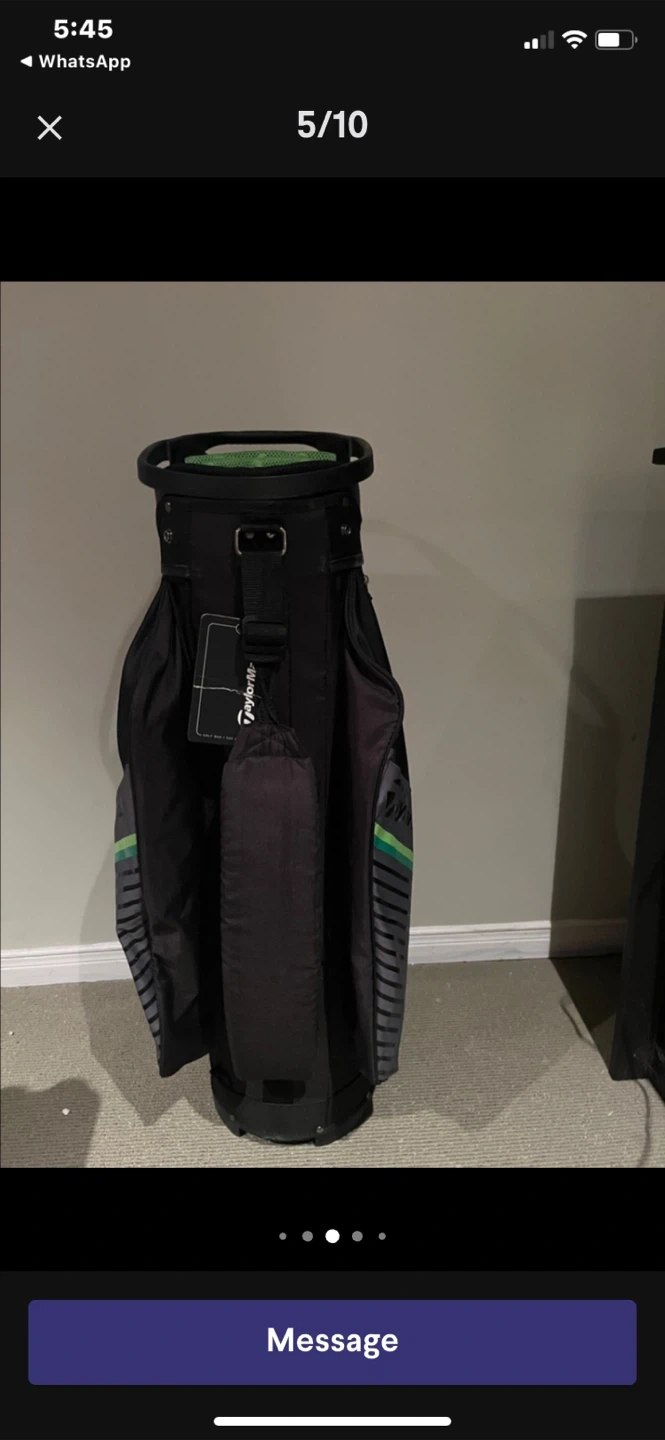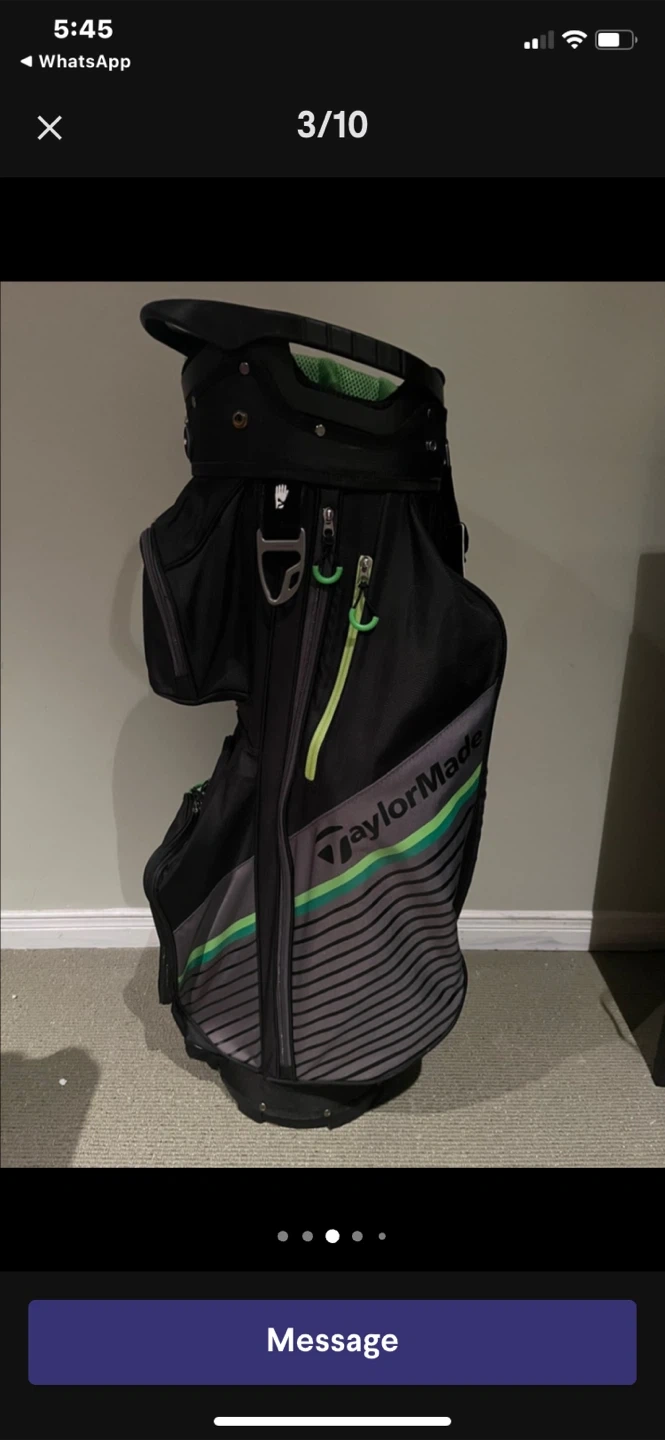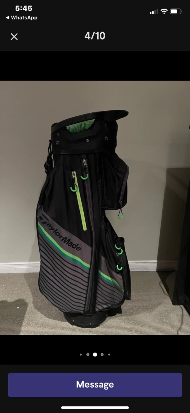 Buy & SellTaylorMade Golf Bag & DriverTaylorMade Golf Bag & Driver$300Selling a TaylorMade golf bag in great condition! It's black with green accents. Perfect for carrying your clubs around the course.WHERE TO MEETAlderwoodView MapSELLERSandyAlderwood967 reviews1 chats·0 favorites·55 viewsSEND CHAT TO SELLERHi Sandy! I’m interested in your listing.Hi Sandy! I’m interested in your listing.Get the Karrot app to chatSign In to chat