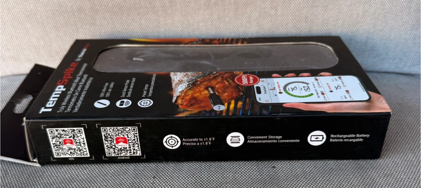 This is a truly wireless Bluetooth meat thermometer from TempSpike. It's 100% wire-free and includes a dual sensor probe. It has a 500ft range and a rechargeable battery.