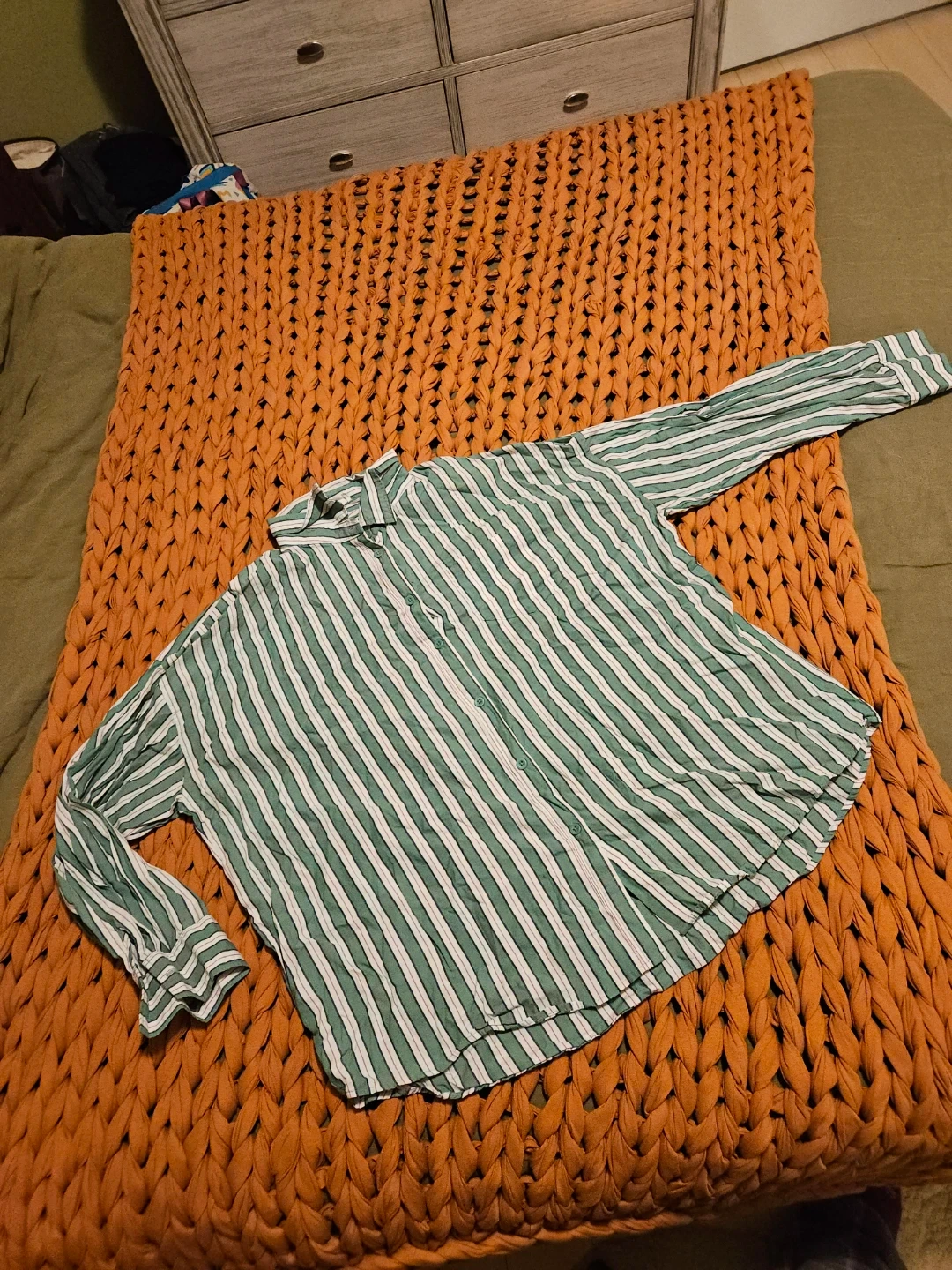 Cotton On green striped button up - sz L π