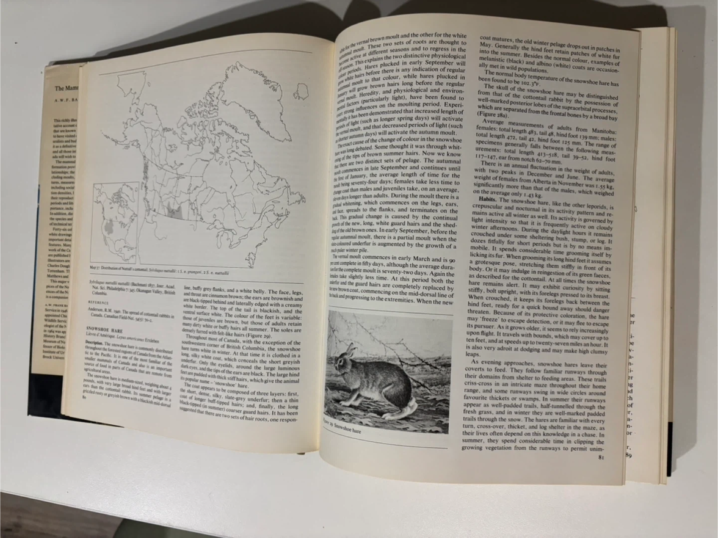 This is a hardcover book titled 'The Mammals of Canada'. It features illustrations and information about various Canadian mammals, including descriptions and distribution maps. The author is A.W.F. Banfield.