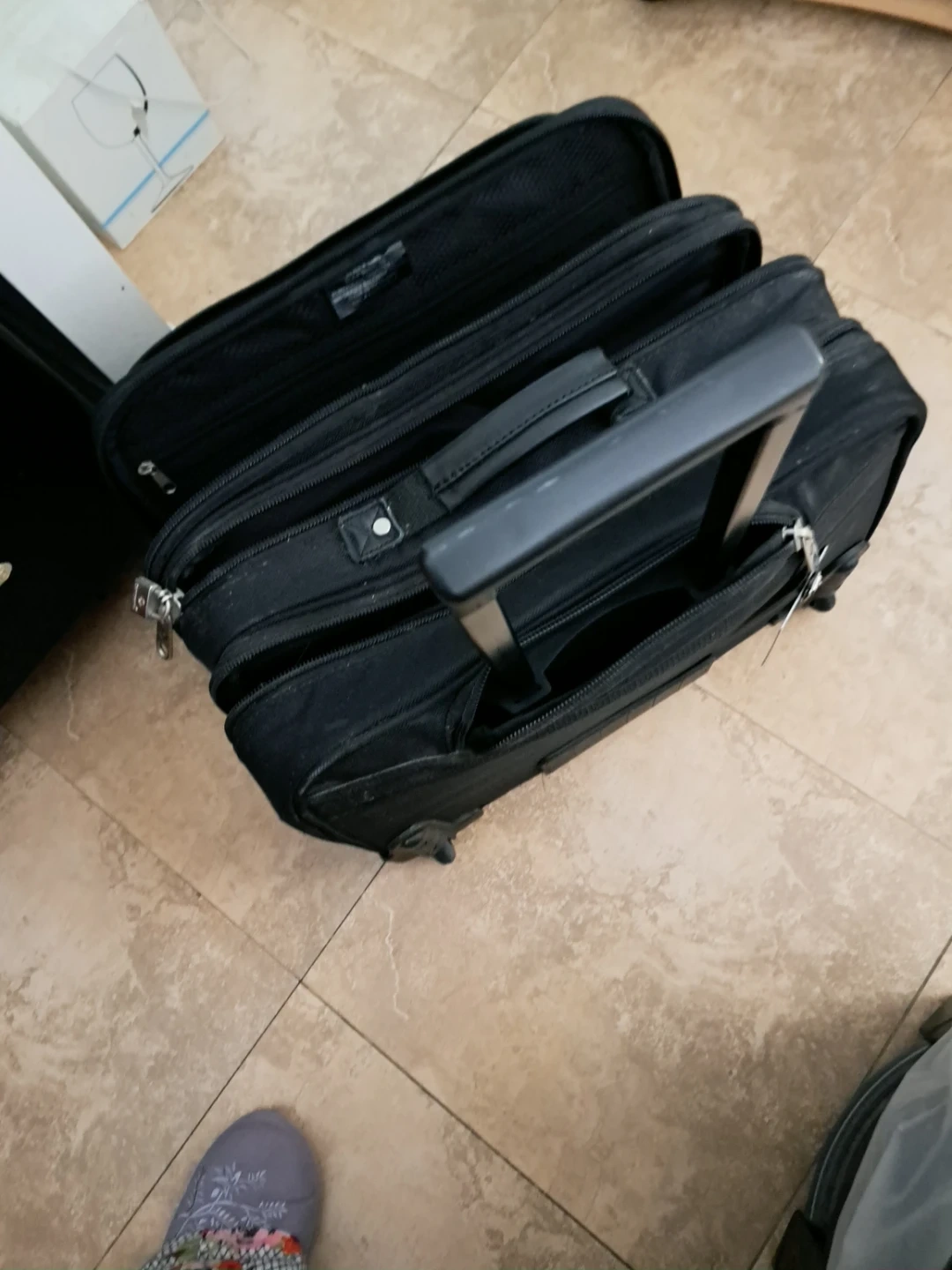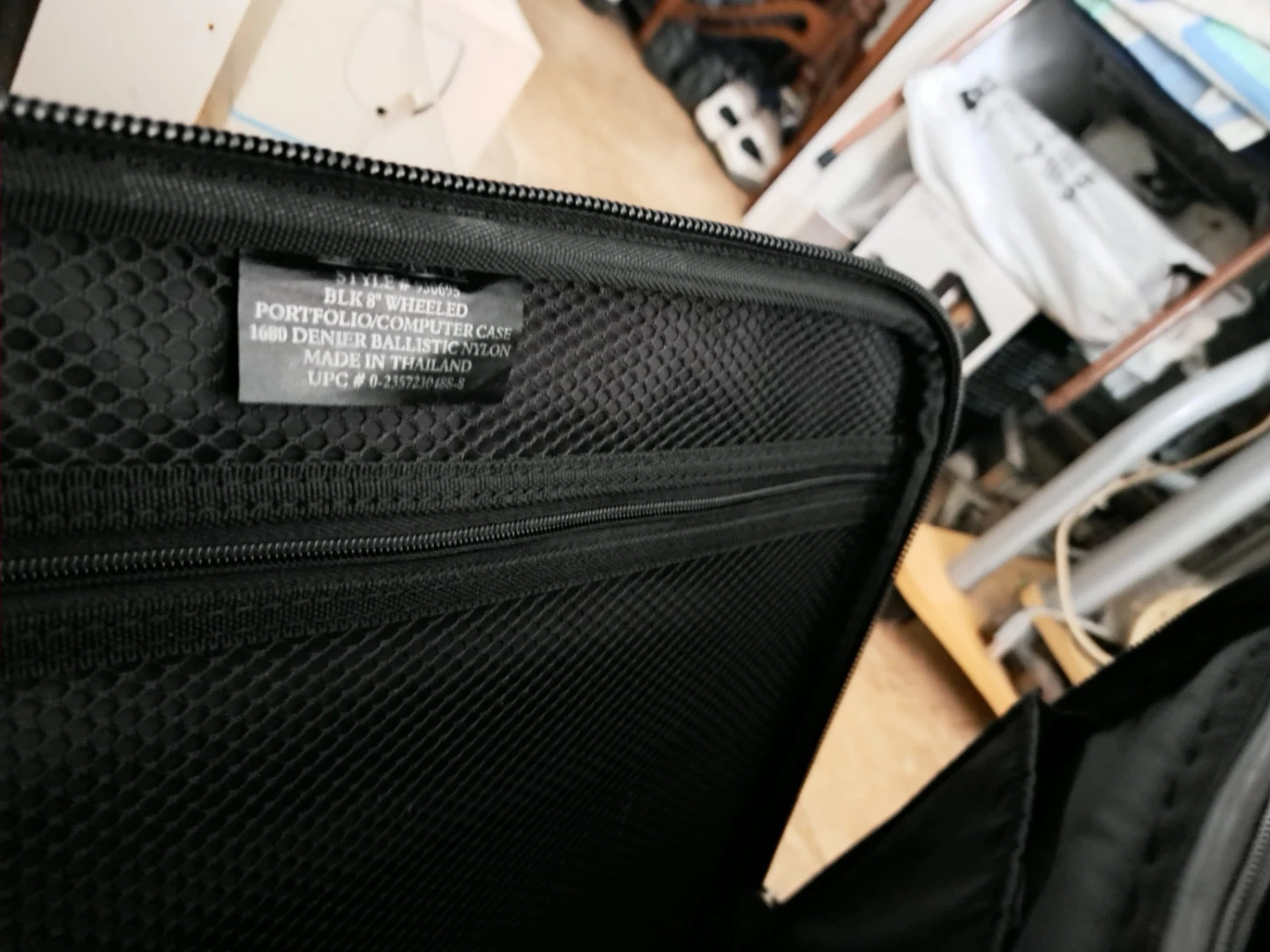 Samsonite -This is a black 8" rolling wheeled portfolio computer case, made from 1680 denier ballistic nylon. It has multiple compartments for organization. It's suitable for carrying a laptop and other work essentials.