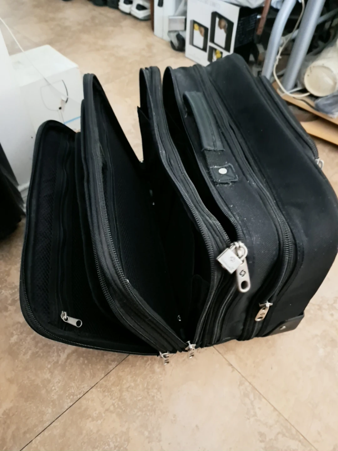 Samsonite -This is a black 8" rolling wheeled portfolio computer case, made from 1680 denier ballistic nylon. It has multiple compartments for organization. It's suitable for carrying a laptop and other work essentials.
